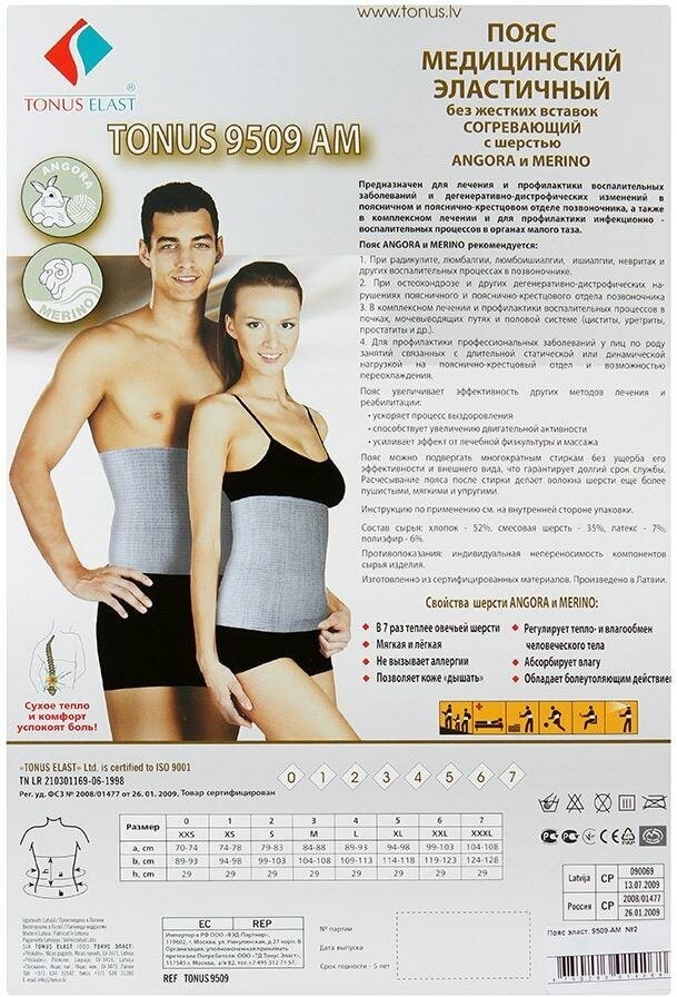 Пояс медицинский эластичныйс шерстью №3 TONUS м.9509-АМ информация: