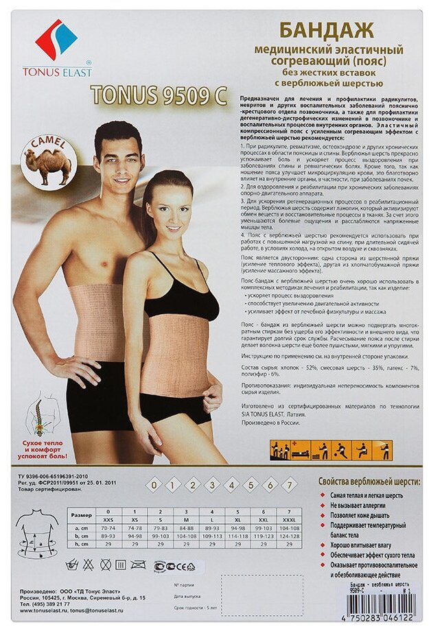 Пояс с шерстью ангорской козы и мериноса Tonus Elast 9509-am, размер 4 информация: