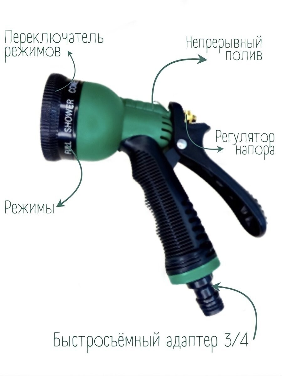 Пистолет для полива, ручной распылитель - насадка на шланг, 8 режимов, корпус пластиковый / насадка на шланг информация: