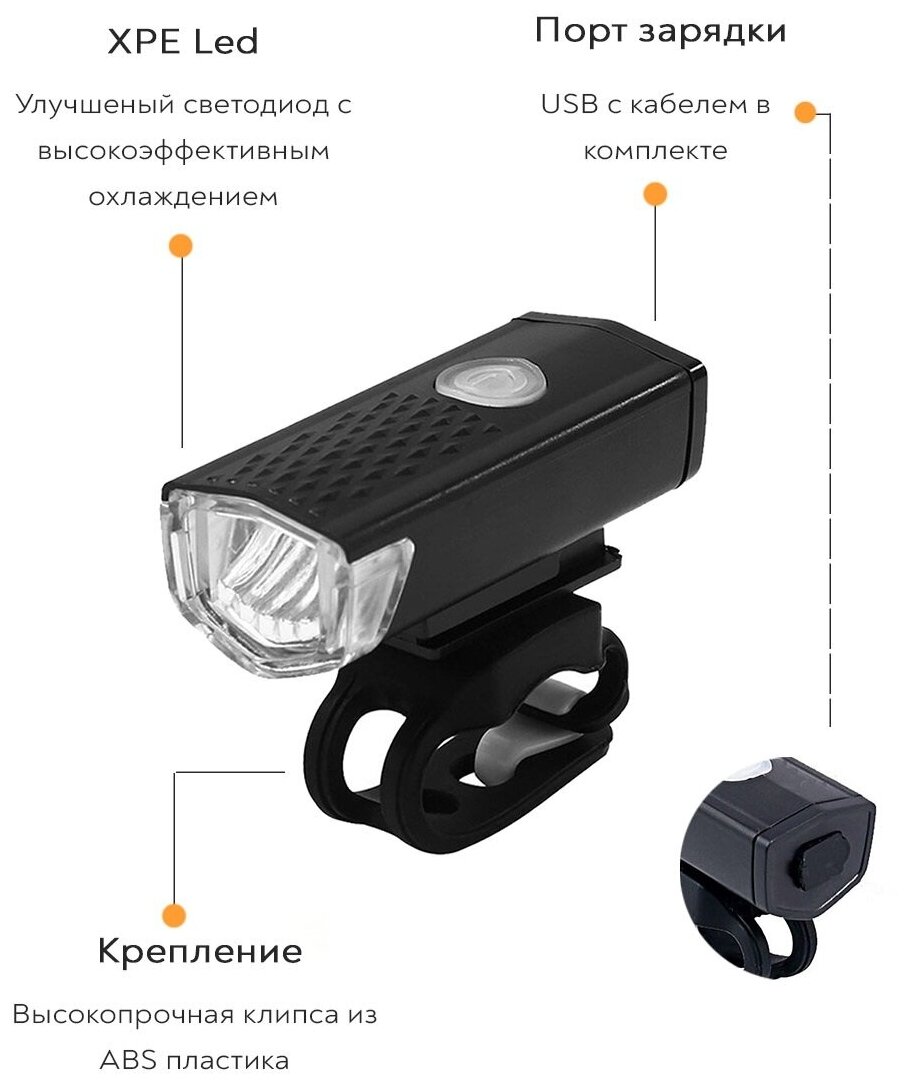 | Состав набора | Набор велосипедных фонарей (передний и задний),USB зарядка и крепление |