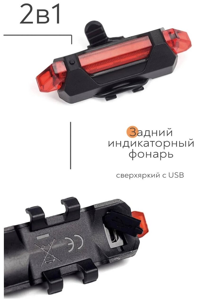 Велосипедный фонарь SimpleShop со встроенным аккумулятором и USB зарядкой / Набор фонарей для велосипеда 2шт: задний и передний, велофара информация: