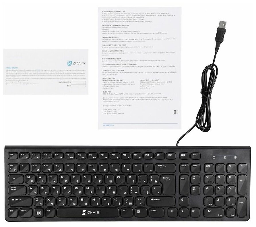 Клавиатура Oklick 590M Keyboard, USB, черная, проводная, slim информация: