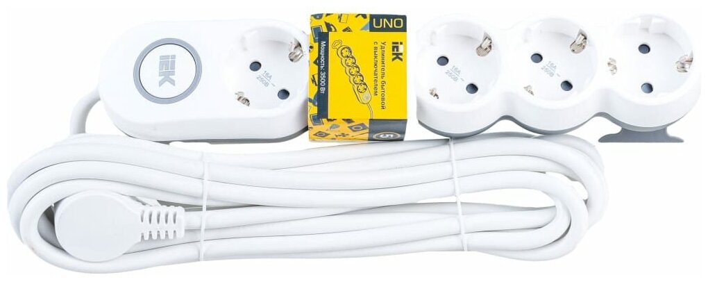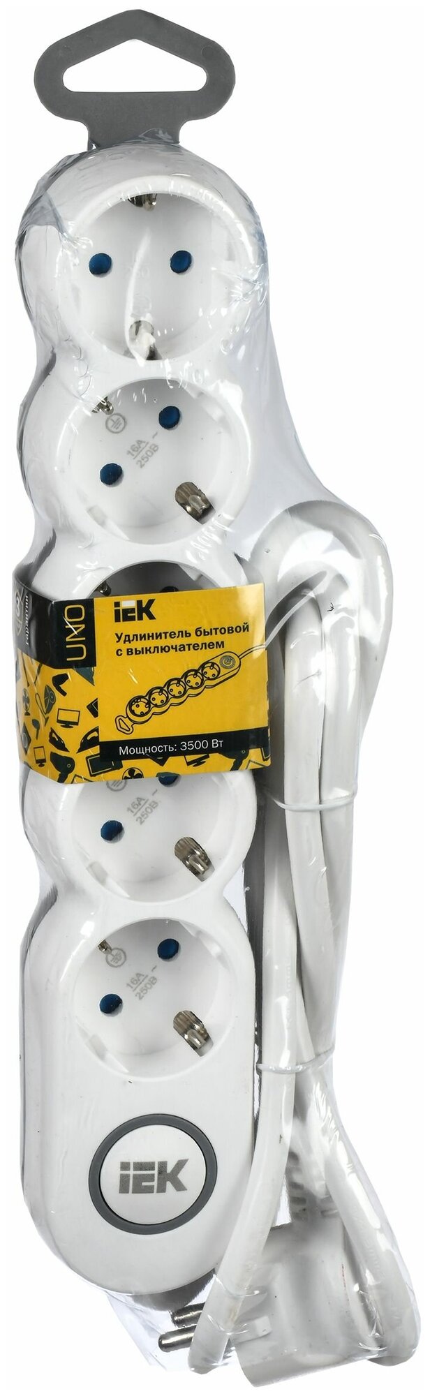 Удлинитель IEK WYP53-16-05-D15-ZK, 5 розеток, 1.5 м, с/з, 16А / 3500 Вт белый