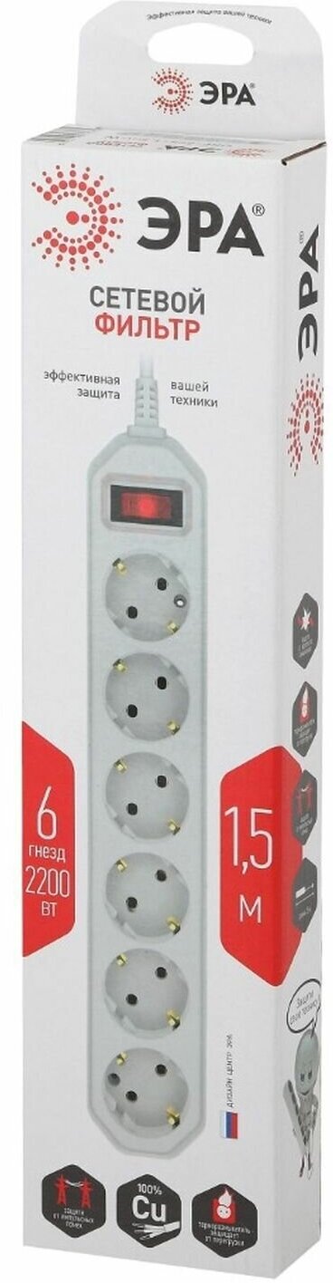Сетевой фильтр Эра Белый, 1,5 м, 6 розеток