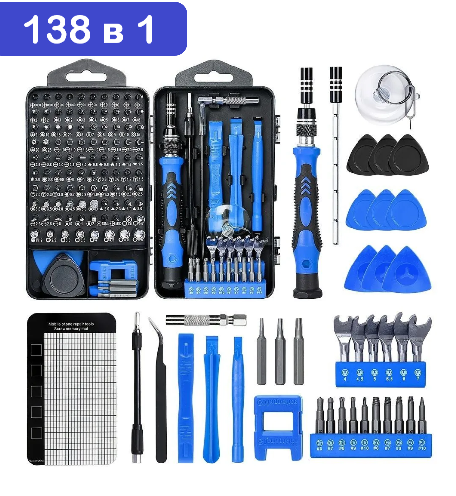 Набор отверток и аксессуаров 138 штук в 1 в кейсе Blue / для разборки и точных работ информация: