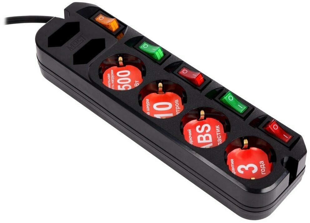 Удлинитель MOST Active A10, 6 розеток, с/з, 10А / 2200 Вт черный 1.6 м