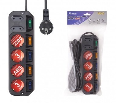 Удлинитель MOST Active A10, 6 розеток, с/з, 10А / 2200 Вт черный 1.6 м