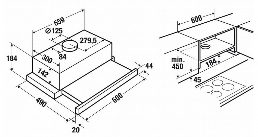 | Диаметр патрубка воздуховода | 125 мм |