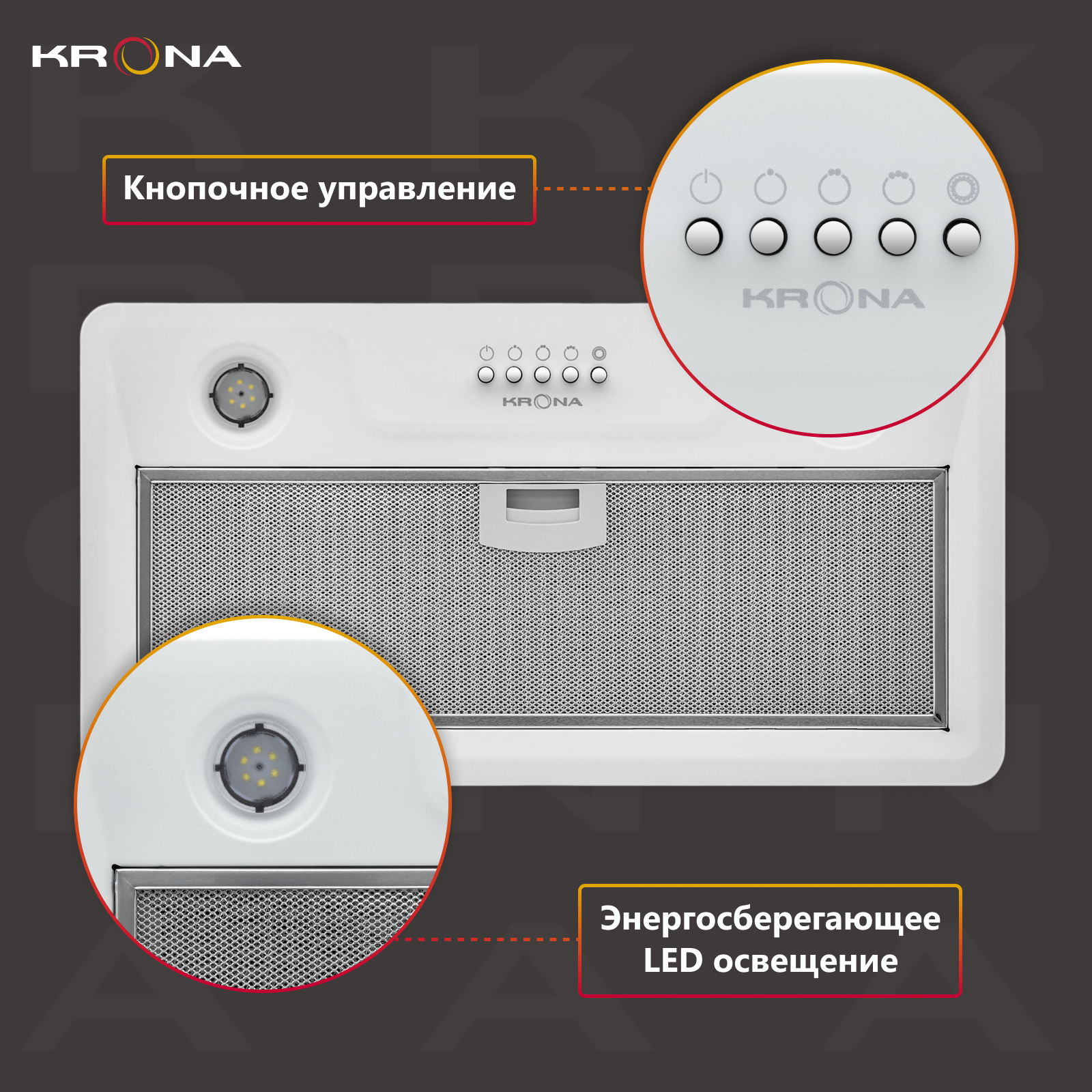 Вытяжка встраиваемая Krona Kamilla 500 белый управление: кнопочное (1 мотор)