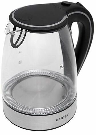 Чайник Centek CT-1009 BLS (серебро/черный) стекло, 1.7л, 2200Вт, внутренняя LED подсветка, кнопка