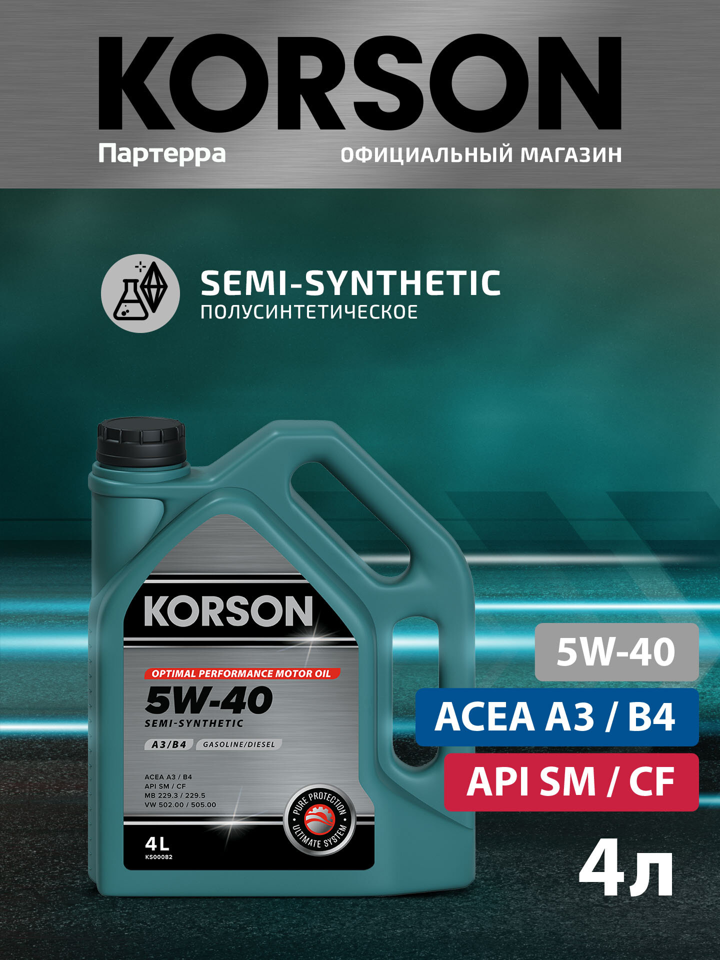 Отзывы на 5W-40 SEMI SYNTHETIC A3 B4 4л (полусинт. мотор. масло) KORSON KS00082