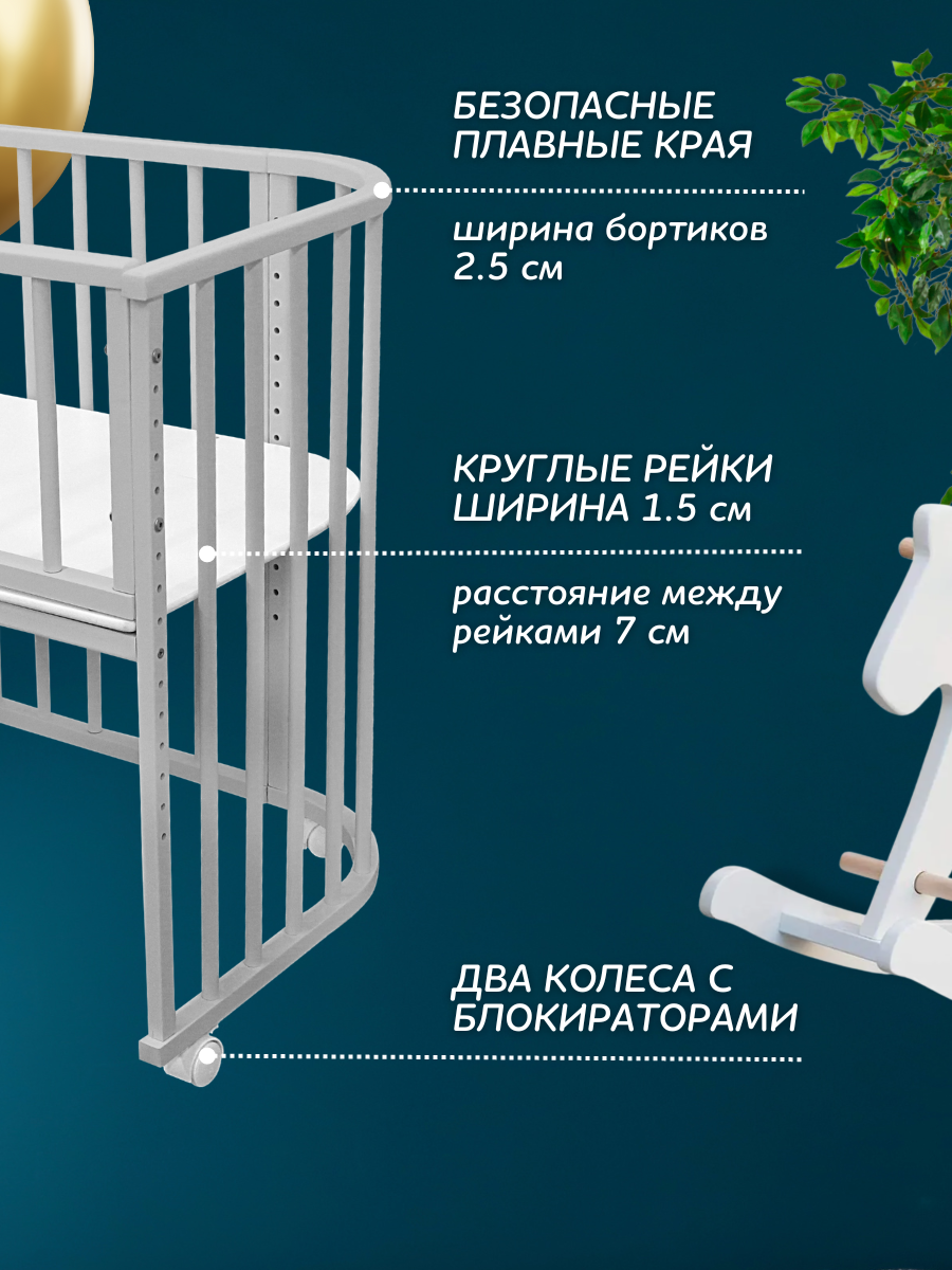 Приставная детская кровать для новорожденного с матрасом Dolce, 96*55, Азбука Кроваток, серый, береза, ремни крепления информация: