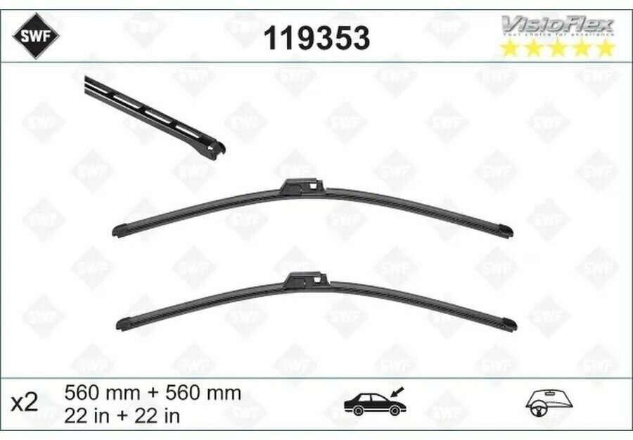 Щетки стеклоочистителя комплект 2 штуки SWF VisioFlex OE 353/ 119353, 560/560 мм