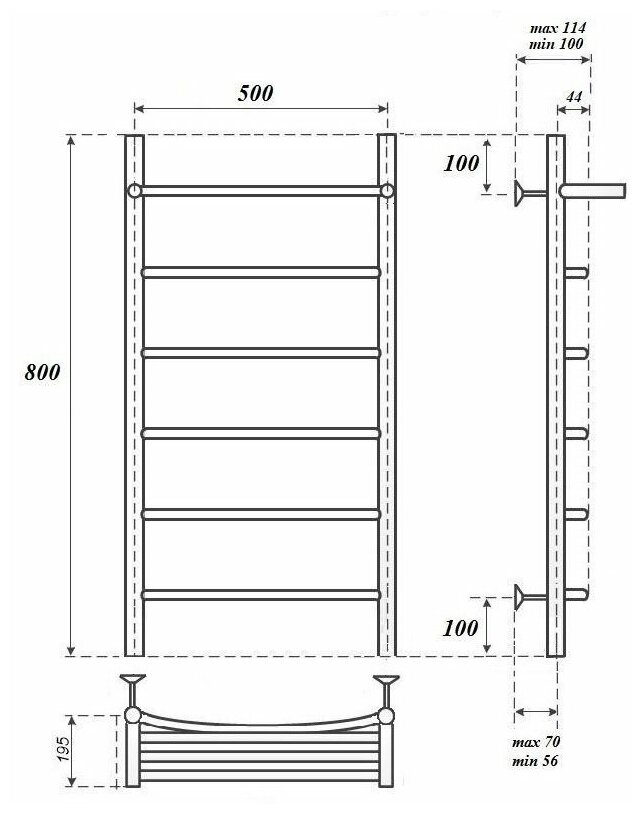 | Дополнительная информация | Полотенцесушитель - 1 шт, кронштейны для крепления к стене - 4 шт, кран Маевского - 1 шт, заглушка декоративная - 1 шт, Электротэн – 1 шт, паспорт/гарантийный талон - 1 шт |