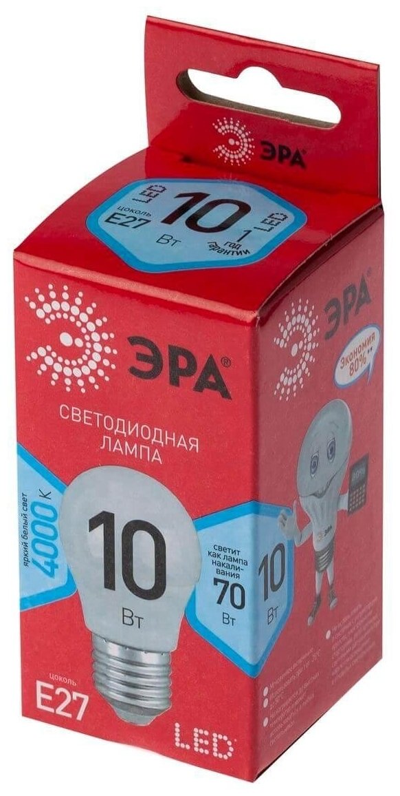 ЭРА ECO шар P45 E27 10W(800lm) 4000K 4K P45-10w-840-E27 R 3631 (арт. 799273)