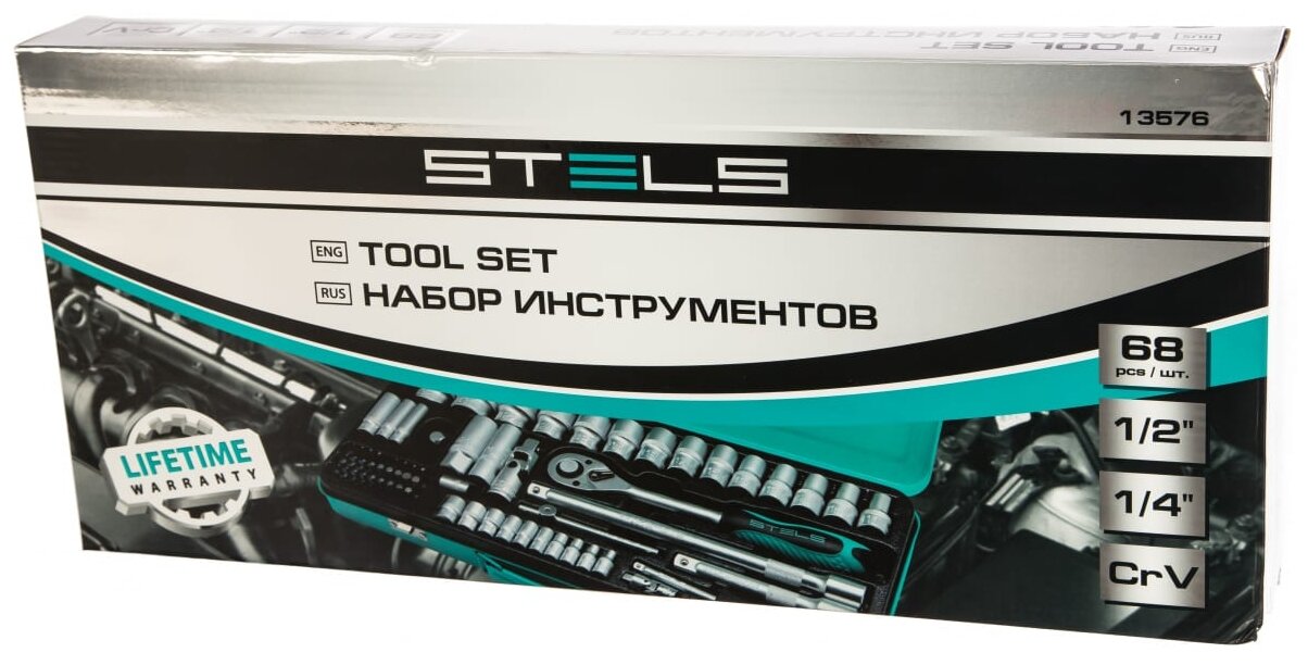 Набор торцевых головок с трещоткой STELS EQUIPMENT STELS 13576 EQUIPMENT 1/2" и 1/4", 68 предм