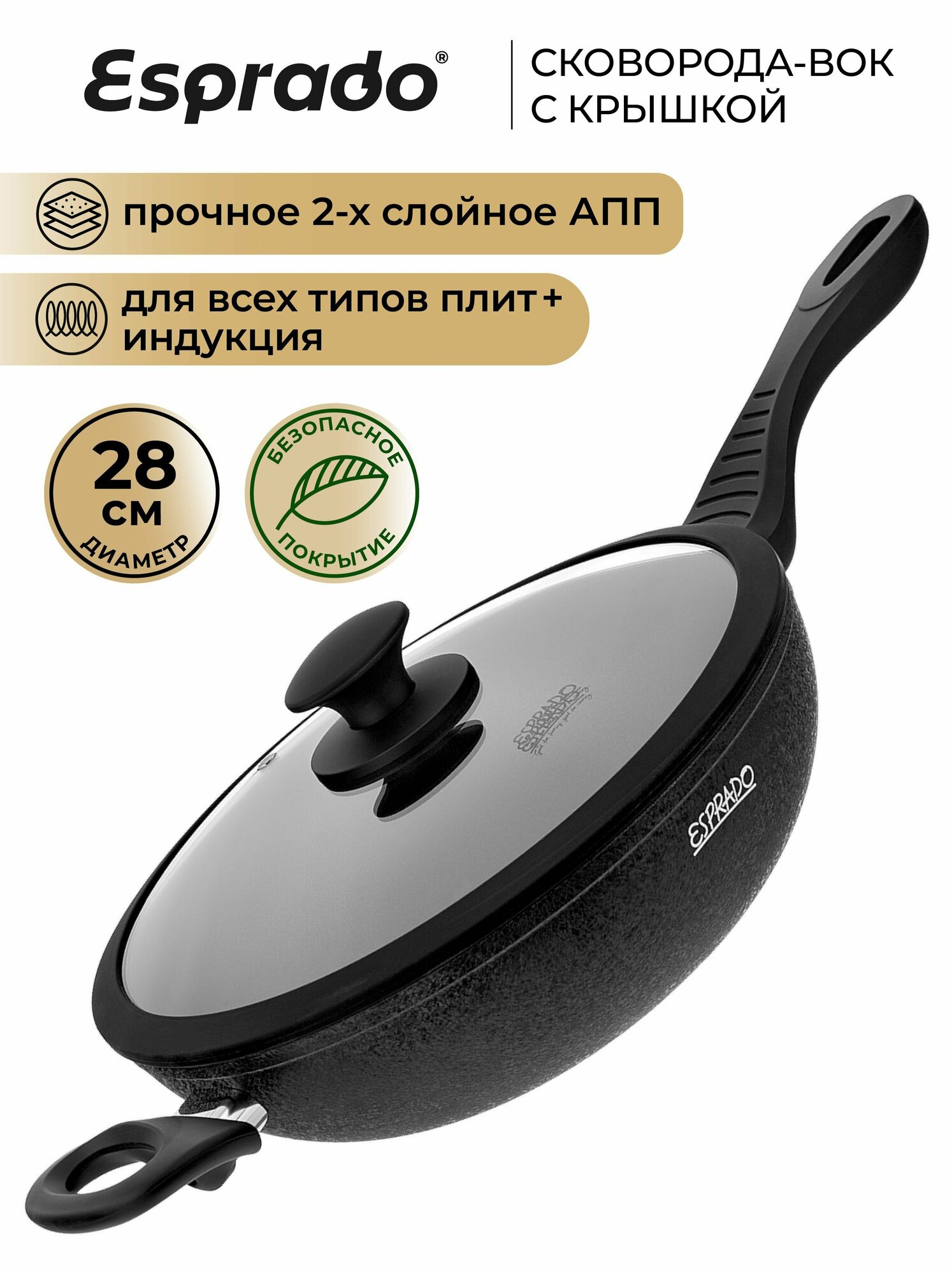 Сковорода-ВОК с крышкой ESPRADO Rustica Wok, 28*8 см