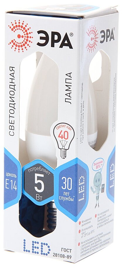 Мы выбрали 10 лучших цен на ЭРА Лампа светодиодная E14 5Вт ЭРА F-LED B35-5w-840-E14 frozed. Перед тем как купить ЭРА Лампа светодиодная E14 5Вт ЭРА F-LED B35-5w-840-E14 frozed посмотрите найденные предложения из Яндекс Маркета и других сайтов на основе XML фидов.