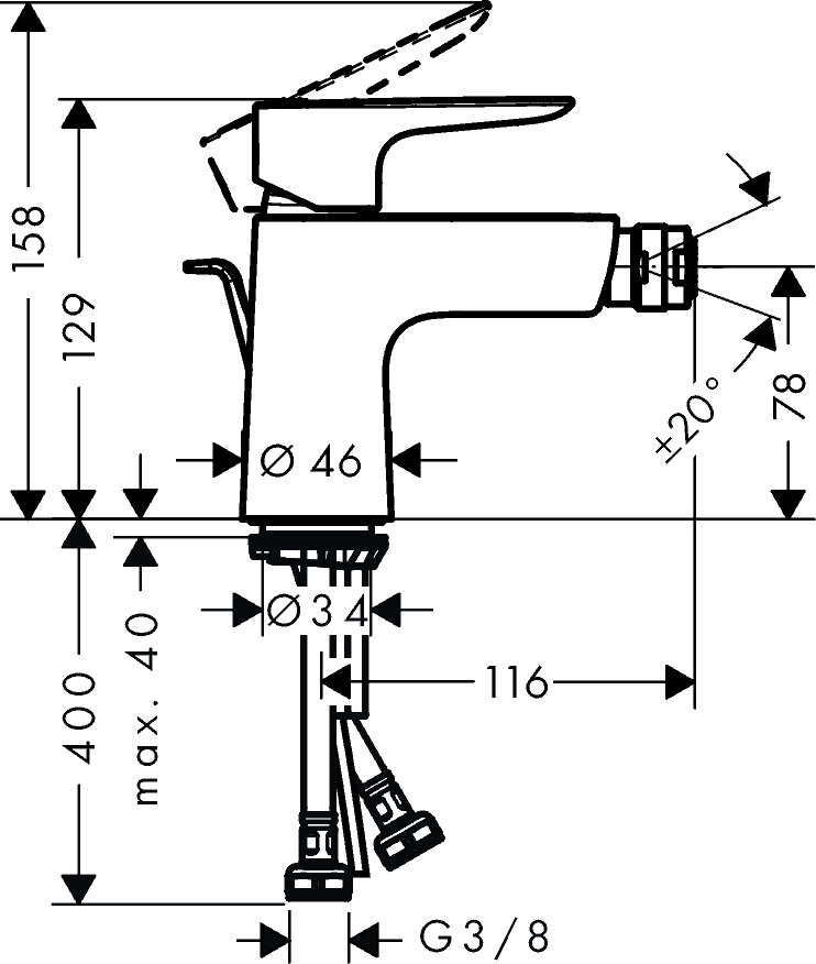 Смеситель для биде с донным клапаном Hansgrohe Talis E 71720140 48 258 ₽