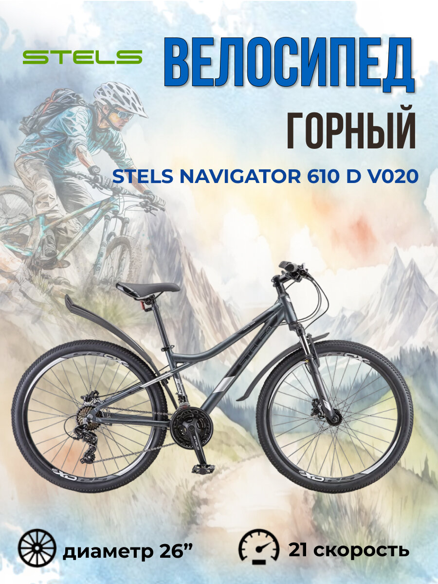 Велосипед горный Stels Navigator 26" 610 D V020 рама 14" антрацитовый информация: