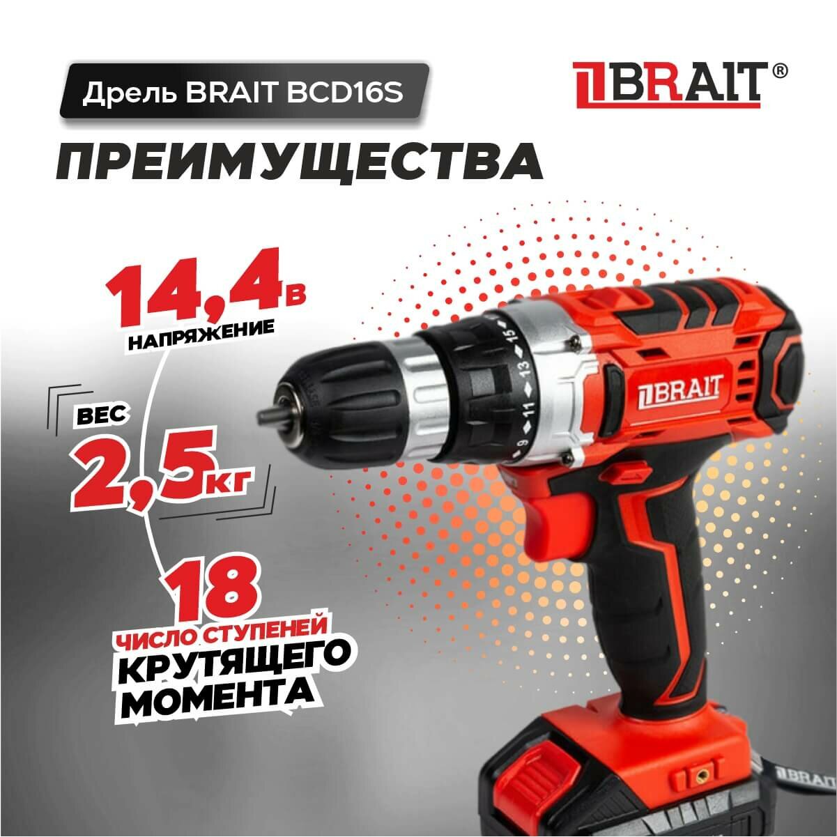 Дрель аккумуляторная BCD16S (14,4В Li-ion, 2 аккумулятора 1,5Ач, 2 скорости, 26Нм, индикатор заряда) информация: