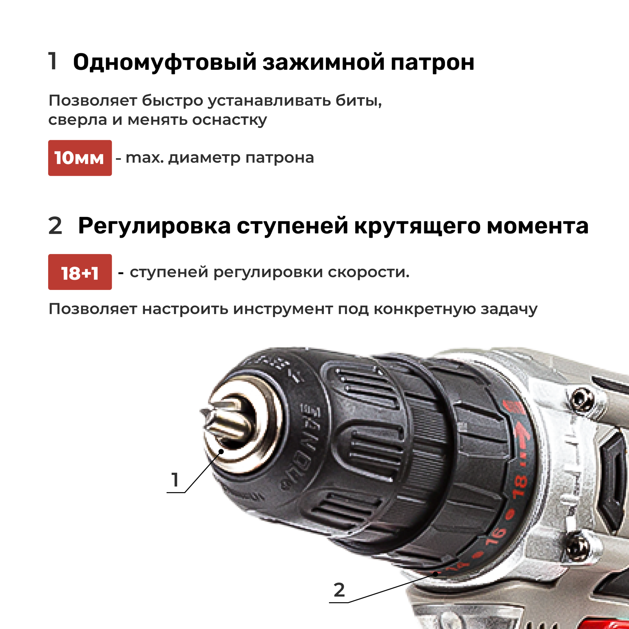 Аккумуляторная дрель-шуруповерт NUMBER ONE CD20/2.0-PROMO 20В