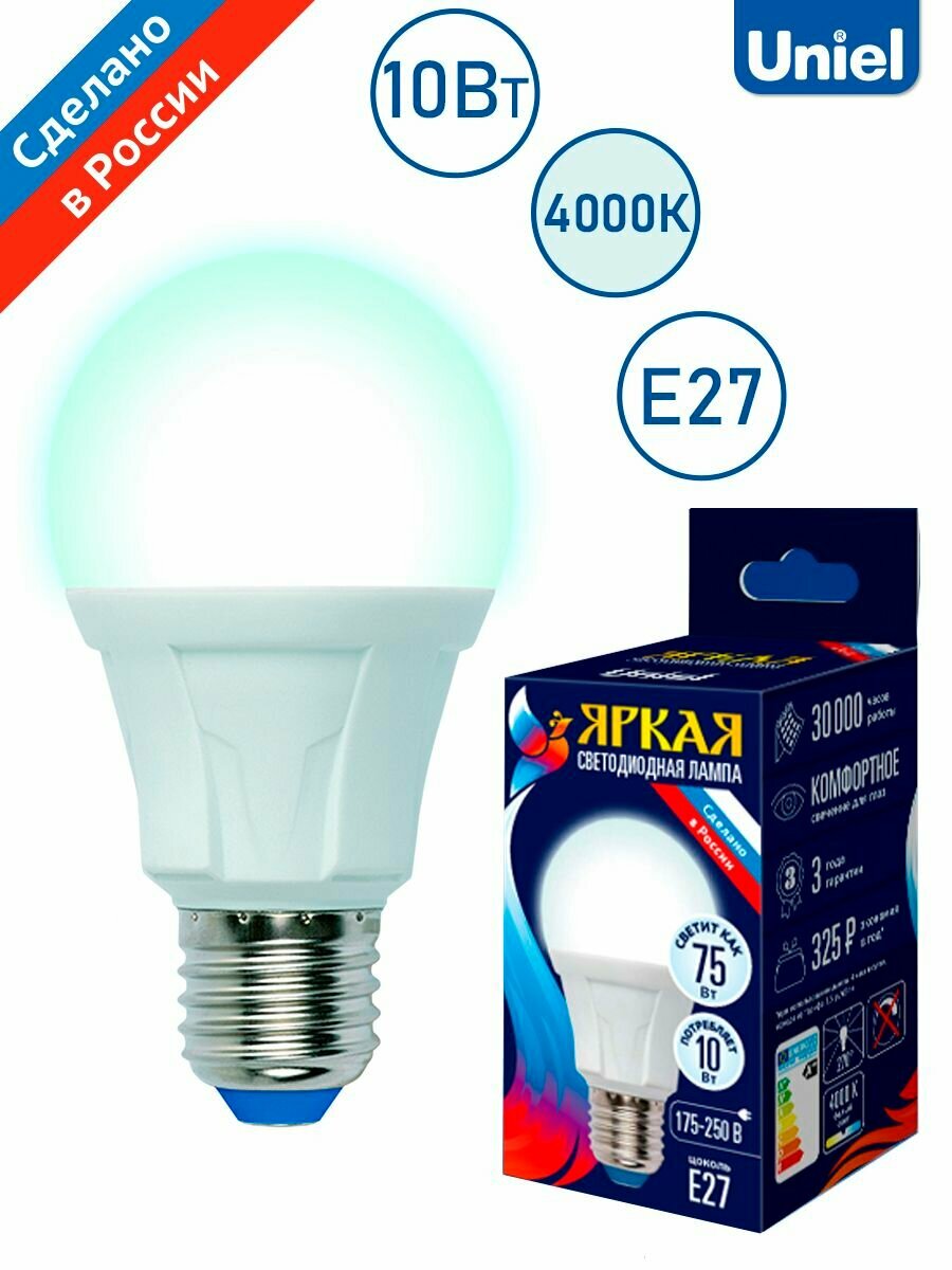 Лампа светодиодная Uniel UL-00001525, E27, A60, 10Вт, 4000 К