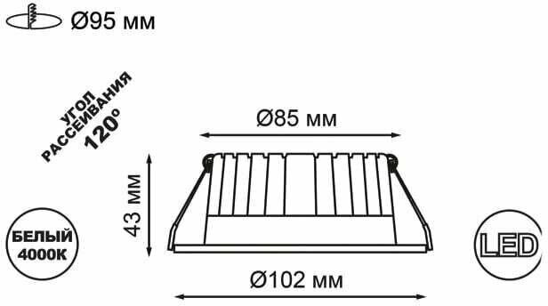 Светильник светодиодный встраиваемый Novotech 357908 DRUM
