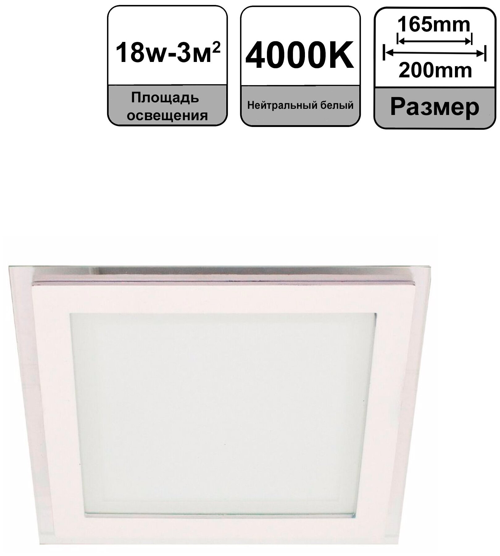 Светильник светодиодный ДВО-18w 4000K 1120Лм квадратный со стеклом белый 29627 FERON 1 848 ₽