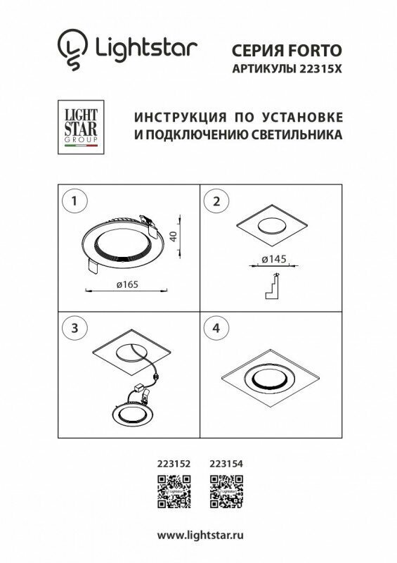 Отзывы на Светильник встраиваемый заливающего света со встроенными светодиодами Forto Lightstar 223152