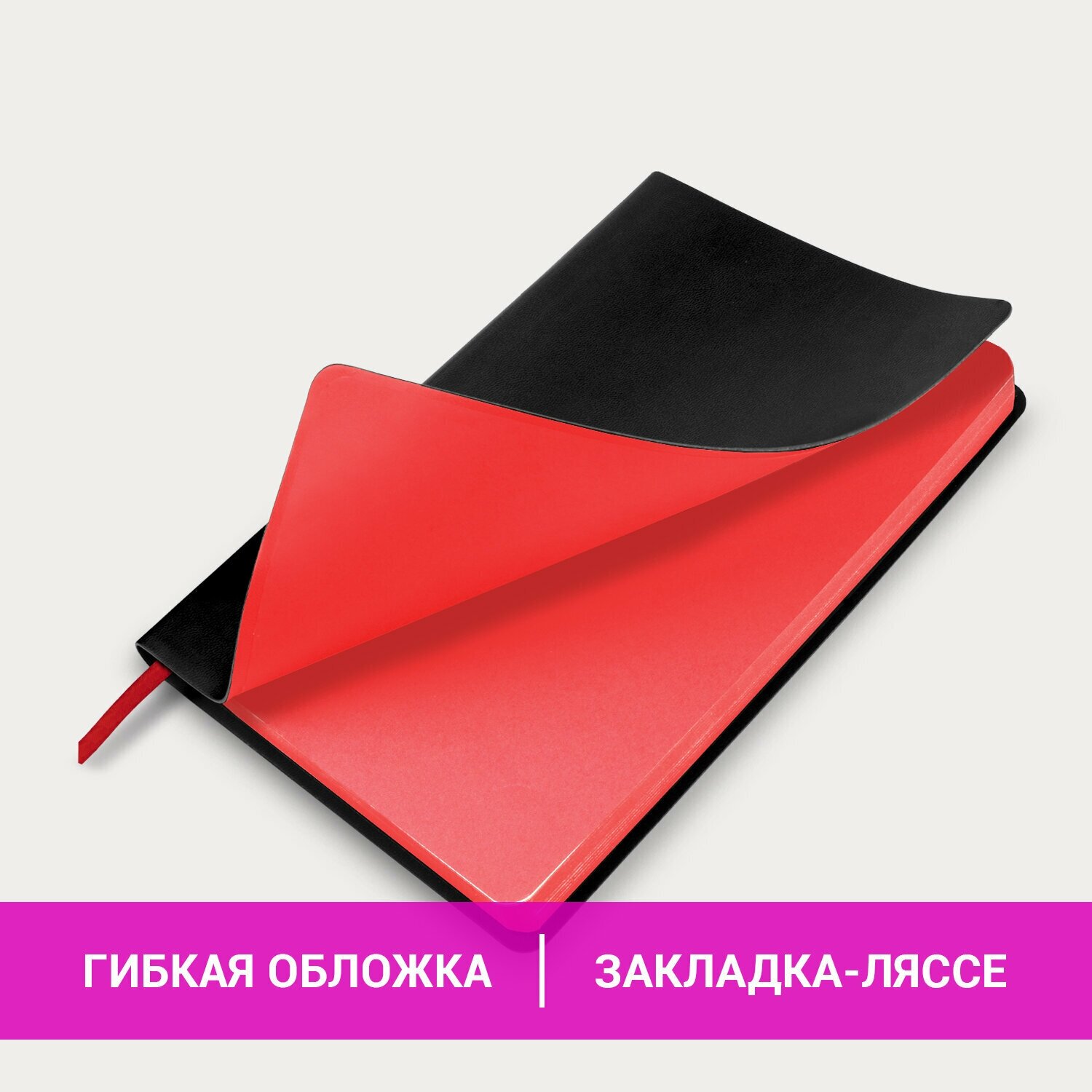 Бизнес-блокнот / записная книжка мужской / женский А5 (148x218 мм), Brauberg Metropolis Mix, под кожу, 80 л., без линовки, черный информация: