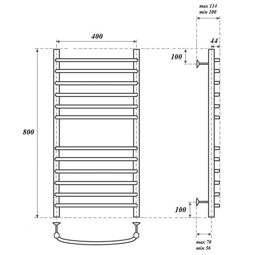 | Дополнительная информация | комплектация: полотенцесушитель - 1 шт, кронштейны для крепления к стене - 4 шт, кран маевского - 1 шт, заглушка декоративная - 1 шт, паспорт/гарантийный талон - 1 шт |