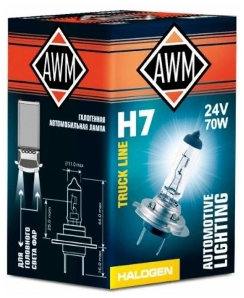 Лампа галогенная AWM Truck Line H7 (PX26d) 24V 70W, 410300019, 1 шт информация: