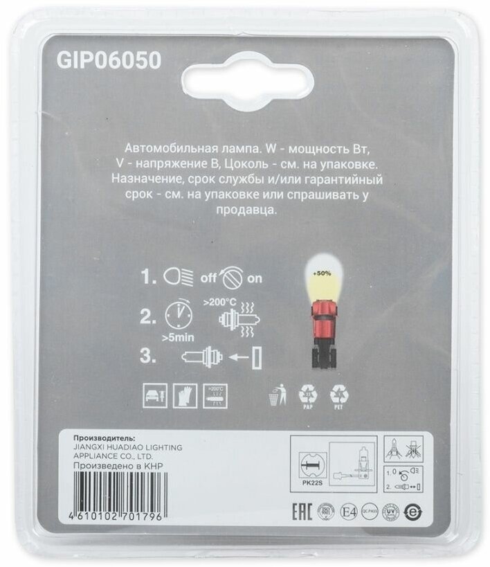 Лампа автомобильная 12V H3 55W 50% PK22s 5000K GANZ 2 шт. блистер GIP06050 информация:
