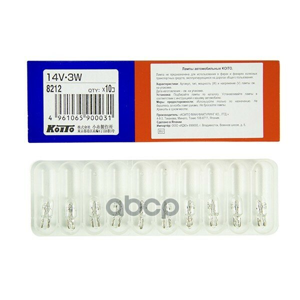 10 цен на KOITO 8212 Лампа доп. освещ. 14V 3W T7 (мин. 10 шт.)