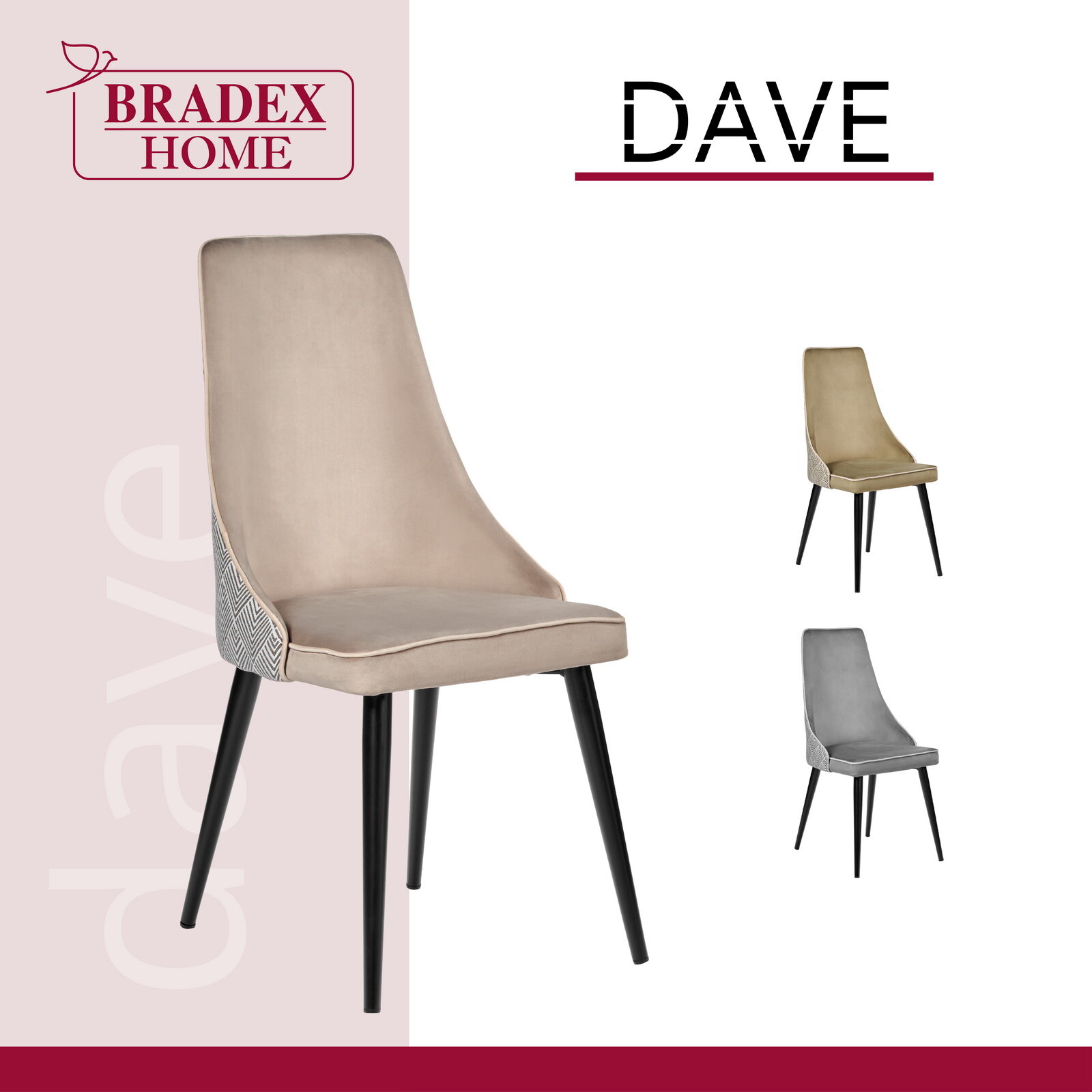 Стул Dave, Цвет обивки: бежевый рисунок, латте, Цвет корпуса: черный