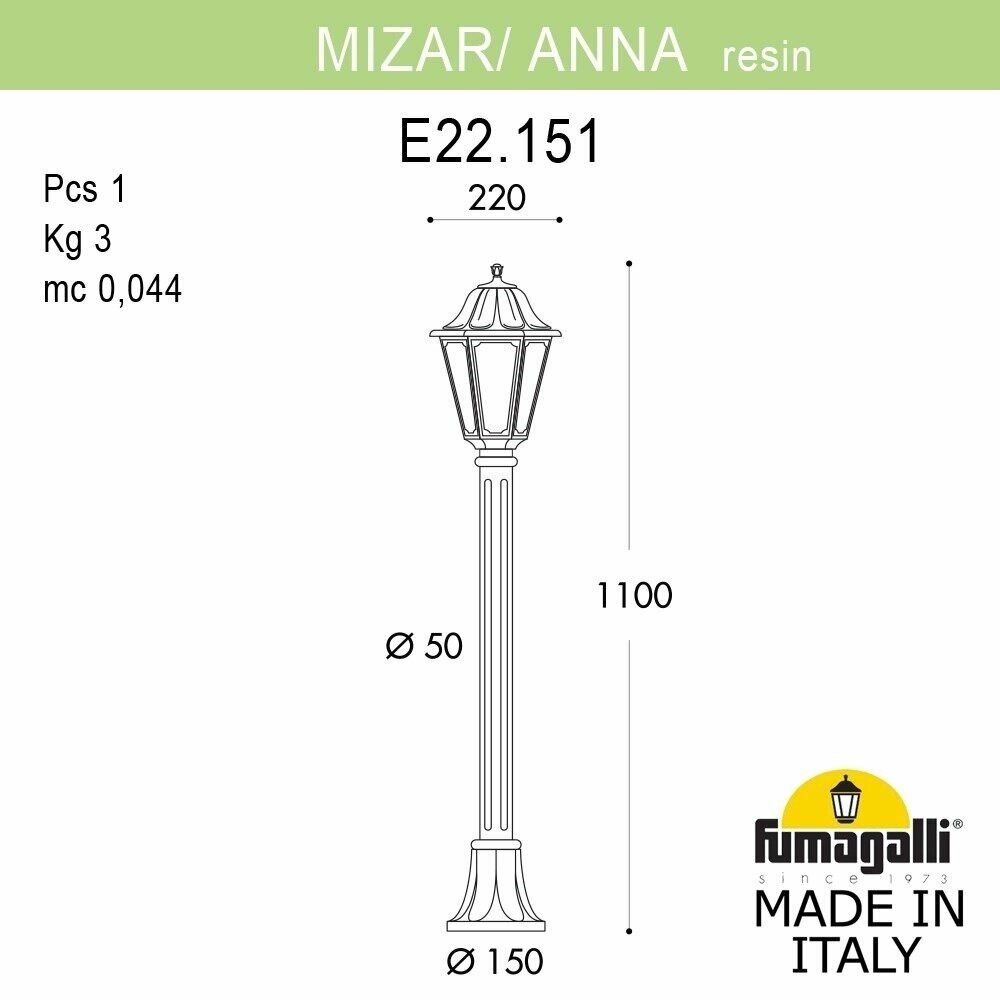 Садовый светильник-столбик FUMAGALLI MIZAR.R/ANNA E22.151.000.AYF1R