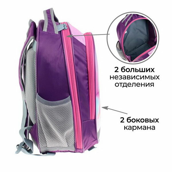 Рюкзак школьный с эргономичной спинкой, Calligrata, 37 * 27 * 16, "Единорог", сиреневый