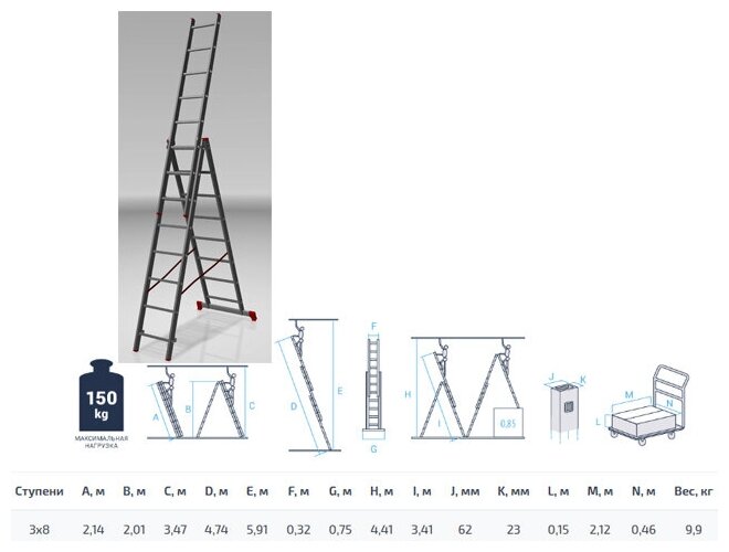 Лестница 3-секционная Startul Лестница трехсекционная алюминиевая 474 см 9,9 кг STARTUL Pro (ST9944-08) информация: