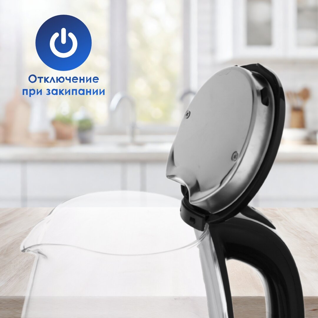 Чайник электрический стеклянный LEX LXK 30010-1, объем 1,2 л, подсветка.