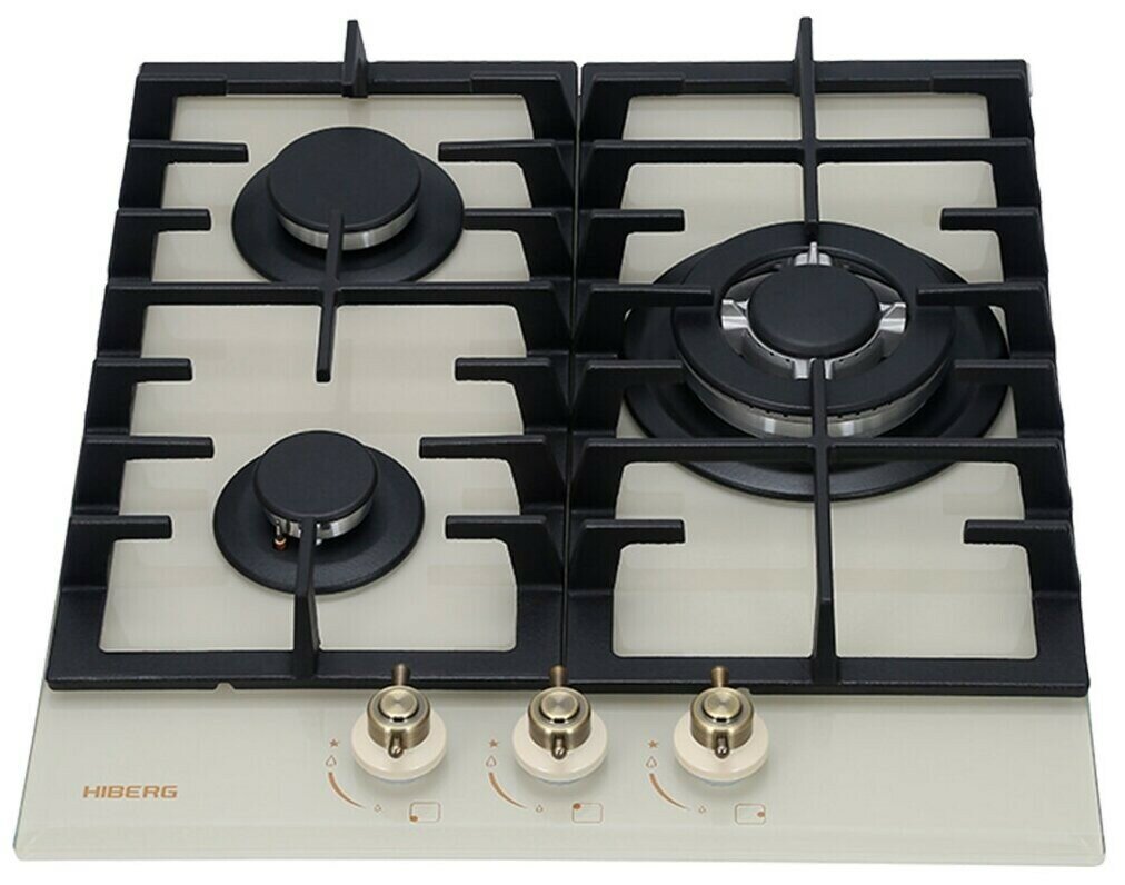 Газовая варочная поверхность HIBERG VM 4534 RY, 3 конфорки, электророзжиг, газ-контроль, бежевый ретро