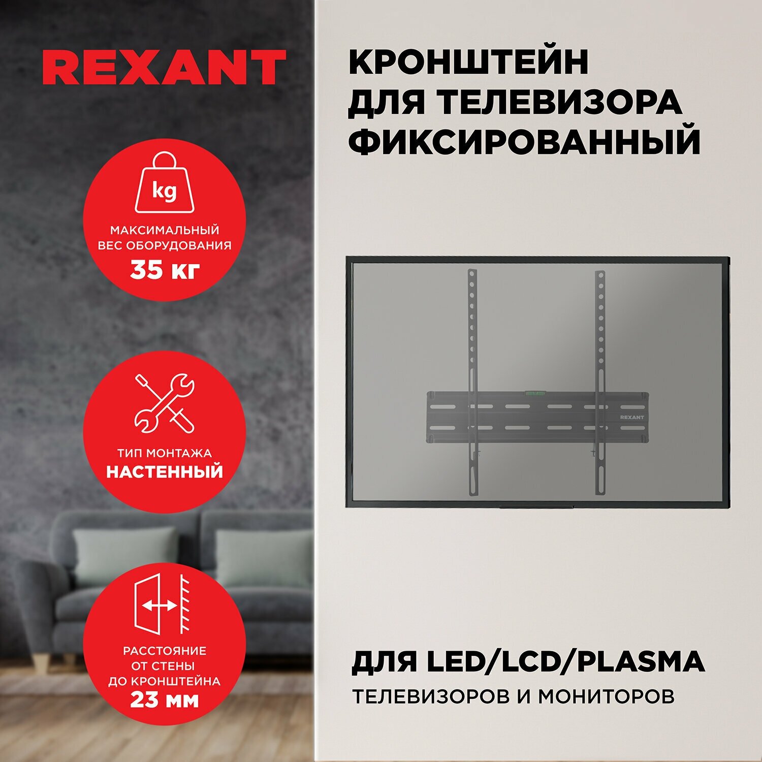 Кронштейн для телевизора 32"-55" фиксированный, серия HOME REXANT