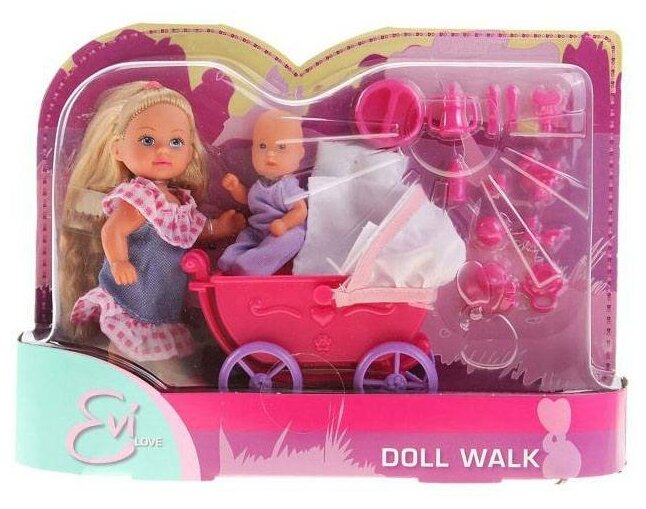 10 цен на Кукла Simba, Еви с малышом на прогулке с акс, 2 в.