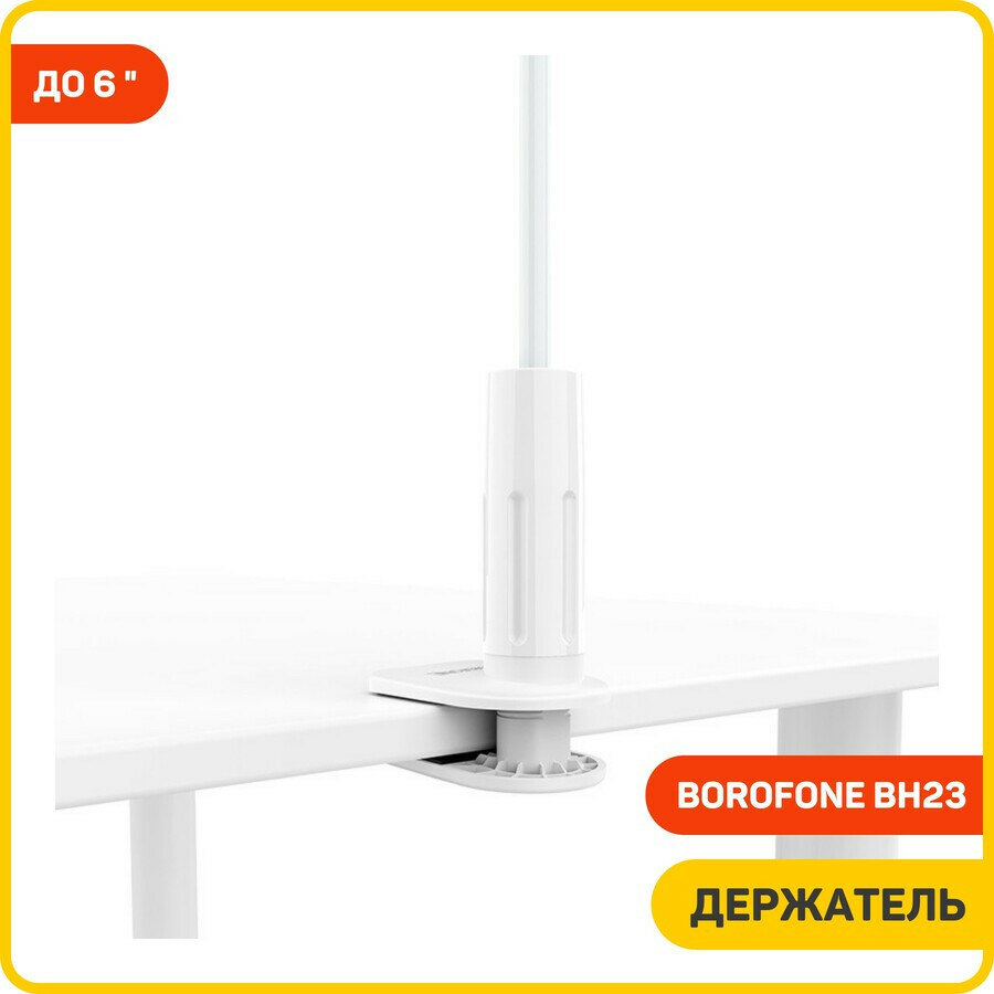 Держатель настольный Borofone BH23 White для телефона 4.5-6.5д струбцина и гибкая ножка, белый