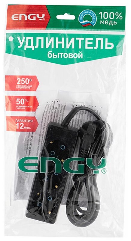 Отзывы на Удлинитель Engy Гранд 3м/3роз. с заземлением (ПВС 3х0 75) черный