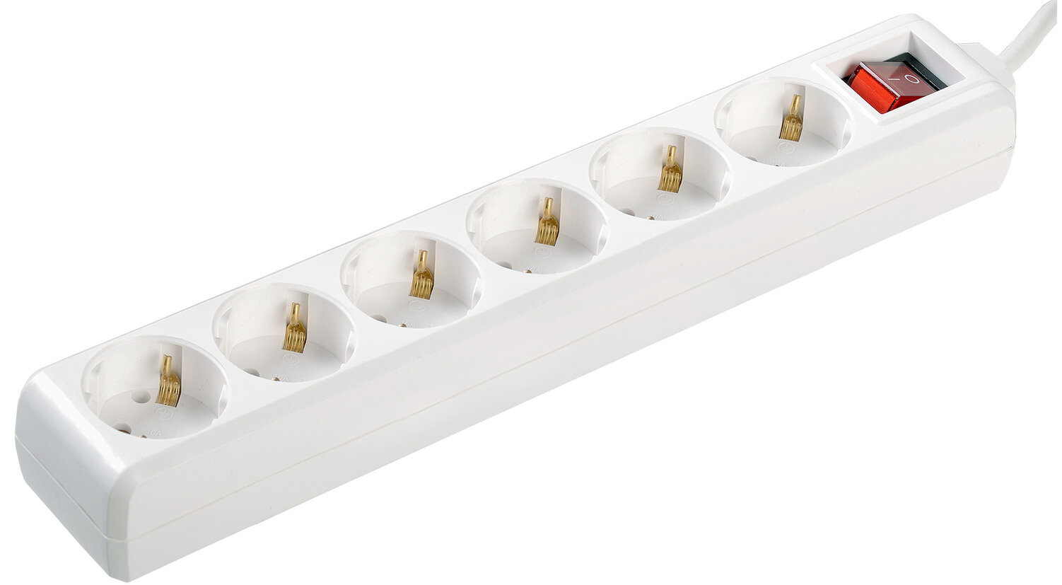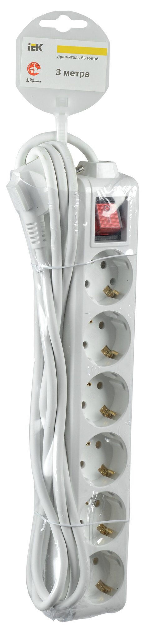 Удлинитель с выключателем IEK У06К-выкл, ПВС 3 x 1 мм², с заземлением, 6 розеток, 3 м, белый