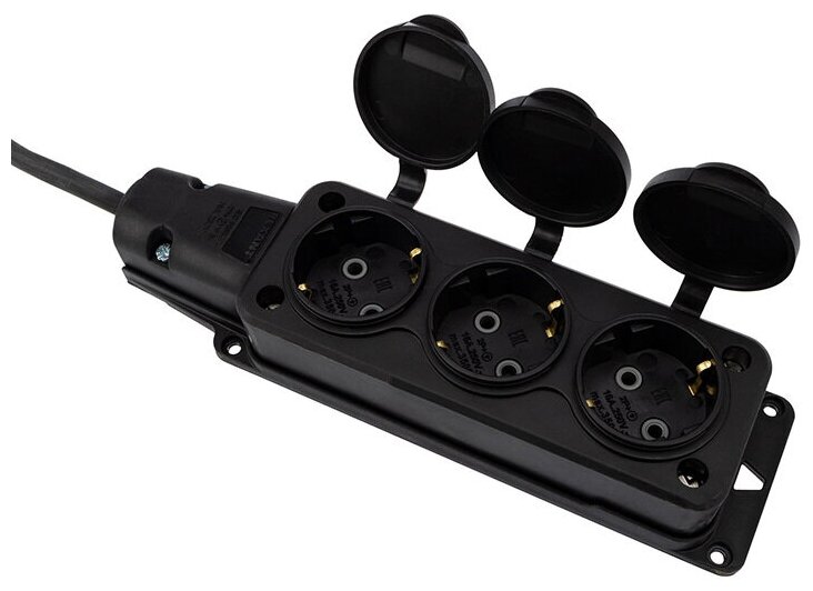 Удлинитель-шнур REXANT ПВС 3х0.75, 10 м, с/з, 6 А, 1300 Вт, IP44, черный (Сделано в России)