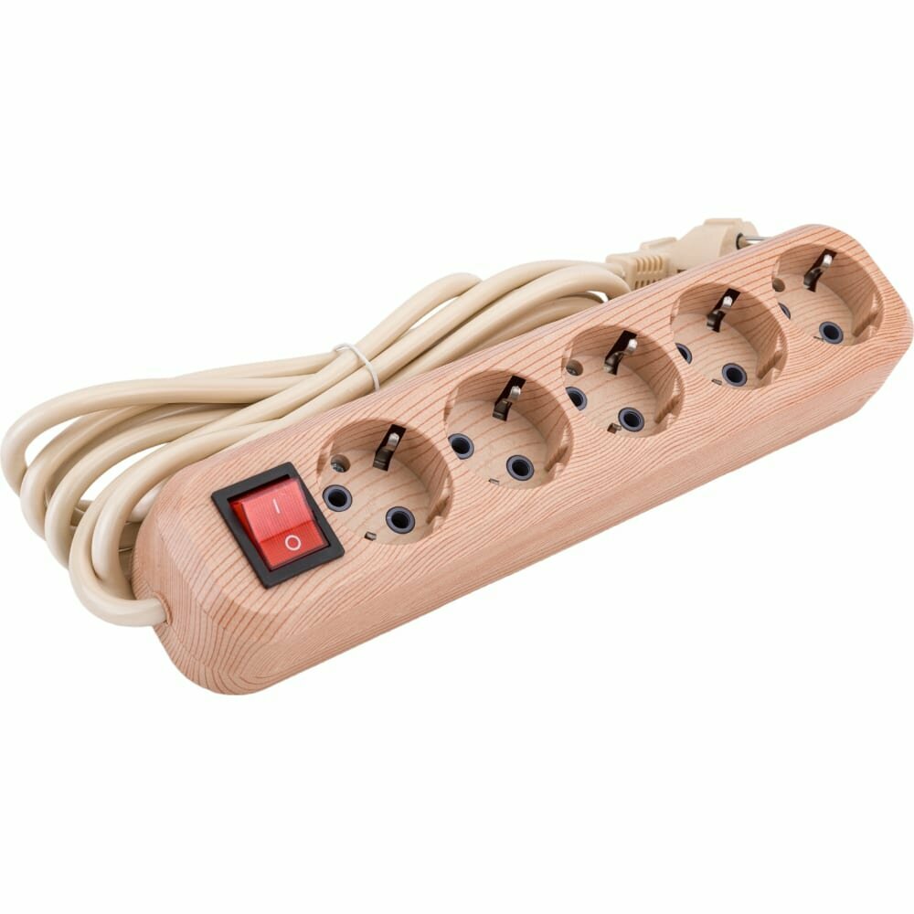 10 цен на Удлинитель бытовой У05В выключатель, 5 гнезд, 3метра,2П+3, ПВС 3х1мм2 "Эко" (сосна) 16А/250В TDM