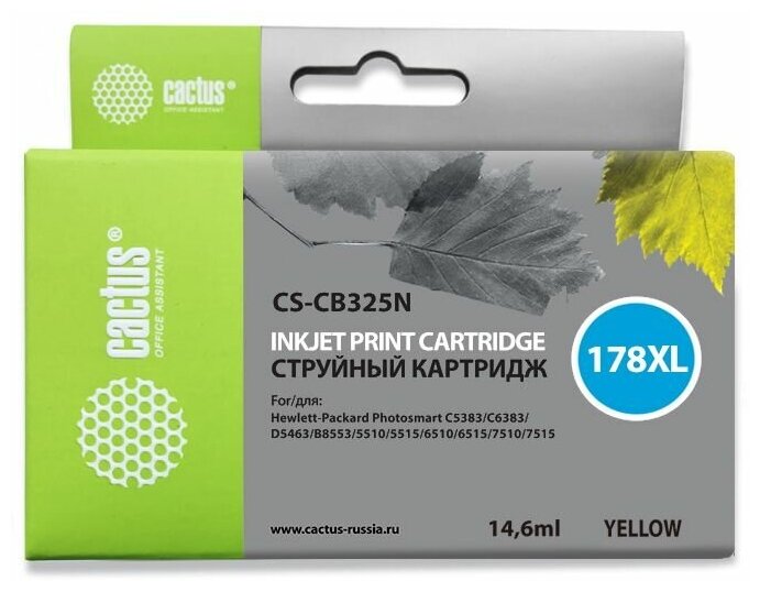 Картридж струйный Cactus CS-CB325N(CS-CB325) №178XL желтый (14.6мл) для HP PS B8553/C5383/C6383/D5463