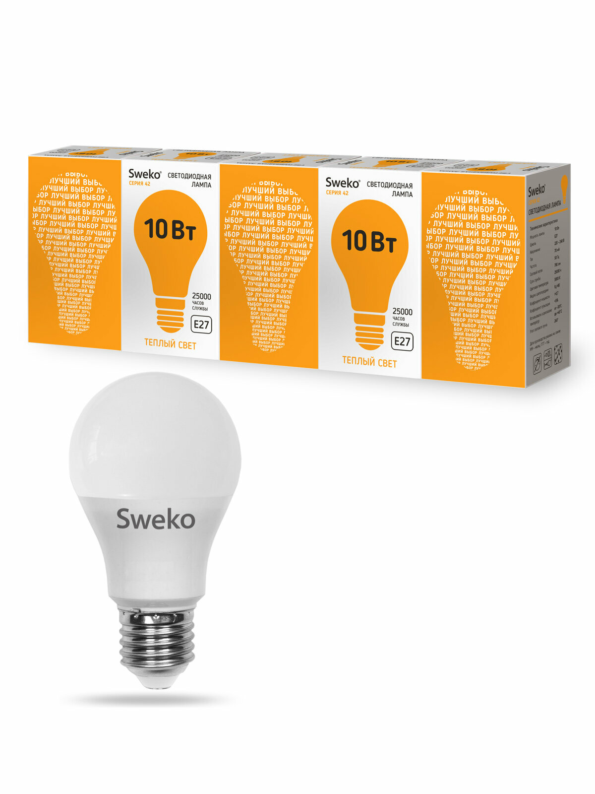 10 цен на Sweko Светодиодная лампа Sweko Стандарт "Груша" матов A60 E27 10W(780lm) 3000K разм. 102х60